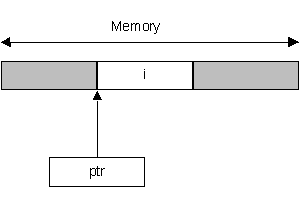 The variable ptr is allowed to point at (or hold the address of) an integer value. I make ptr point at a variable by finding out its address and setting ptr to this: