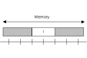 In the diagram on the right you can see that the variable i takes up two storage locations. In the PICmicro microcontroller there are just two sizes of variable, 8 bit values (char) which are held in a single location, and 16 bit values (int) which are held in two locations. Note that these sizes are not common to all C versions of C.