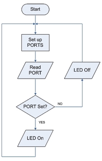 We actually construct the program in C by using an if condition to look at the port and place the whole thing in a while loop.