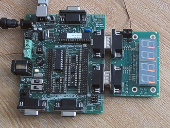 The Lab 1 exercises require an EB008 7-Segment display board connected to Port A and Port B.