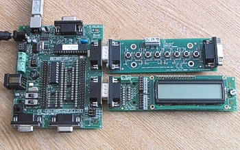 The Lab 8 exercises were written for a PIC16F1937 processor with switchs connected to Port A and an LCD Display connected to Port B.