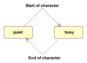 On the right you can see a "top level" state diagram for my Morse Code system The lines show how the states change from one to another. Something which causes a change in state is called an event.