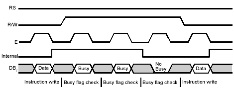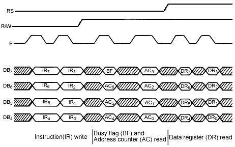 Reads Busy-flag (BF) indicating internal operation is being performed and reads CGRAM or DDRAM address counter contents (depending on previous instruction). |