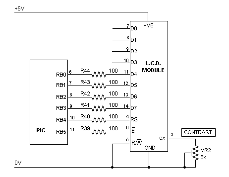 The LCD panel connected to the PICmicro development board uses four wire mode, which means that you must send the data in two four bit chunks. Note also that the read/write (R/W) line is not connected. Instead it is pulled permanently low, putting the LCD panel into write mode at all times. If you connect this signal you will be able to read from the LCD (note that you would have to put the PICmicro port that you use into input mode to read from the LCD). This can help you get round memory limitations in the PICmicro, since it means that you can use the LCD to hold a copy of the screen information rather than holding it in a variable.