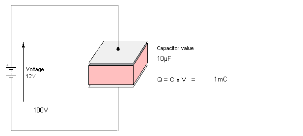 (:Summary:Contains the 'action' links (like Browse, Edit, History, etc.), placed at the top of the page, see site page actions:) (:comment This page can be somewhat complex to figure out the first time you see it. Its contents are documented at PmWiki.SitePageActions if you need help. :) * Print (:comment (:if group Site,SiteAdmin,Cookbook,Profiles,PmWiki*:) (:comment delete if and ifend to enable backlinks:) * %item rel=nofollow class=backlinks accesskey='$[ak_backlinks]'% [[{*$Name}?action=search&q=link={*$FullName} | $[Backlinks] ]] (:ifend:) :) * Login Charge on a Capacitor<^< Capacitance | Course Index | Electric Field Strength >^>(:nl:) It should now be apparent that an electric field will appear within the capacitor whenever a potential difference is applied to the plates. At the same time, a positive charge will appear on one of the plates and an equal (but opposite) charge will appear on the other. The value of the charge present, Q, is: * Directly proportional to the capacitance of the capacitor (the larger the capacitance the larger the charge) * Directly proportional to the voltage between the capacitor plates (the larger the voltage the larger the charge). In fact, the charge on a capacitor is given by: Q = C V Where Q is the charge in Coulomb, C is the capacitance (in Farad) and V is the voltage (in Volts).