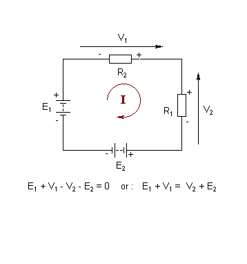 (:Summary:Contains the 'action' links (like Browse, Edit, History, etc.), placed at the top of the page, see site page actions:) (:comment This page can be somewhat complex to figure out the first time you see it. Its contents are documented at PmWiki.SitePageActions if you need help. :) * Print (:comment (:if group Site,SiteAdmin,Cookbook,Profiles,PmWiki*:) (:comment delete if and ifend to enable backlinks:) * %item rel=nofollow class=backlinks accesskey='$[ak_backlinks]'% [[{*$Name}?action=search&q=link={*$FullName} | $[Backlinks] ]] (:ifend:) :) * Login Kirchoff's Voltage Law<^< Worksheet: Kirchoff's Current Law | Course Index | Examples: Kirchoff's Voltage Law >^>(:nl:) ![]() Kirchhoff's Voltage Law states that the algebraic sum of the potential drops in a closed network (or mesh) is zero. Here again, the term "algebraic" simply indicates that the polarity of each voltage drop as you move around the closed mesh must be taken into account by giving it an appropriate sign, either positive (+) or negative (-). Convention: *Start at the positive terminal of the largest EMF and move clockwise around the circuit. *Voltages acting in the same direction as you move around the circuit are positive(+). *Voltages acting in the opposite direction as you move around the circuit are negative(-). (:nl:)(:table style="clear:both":)