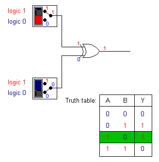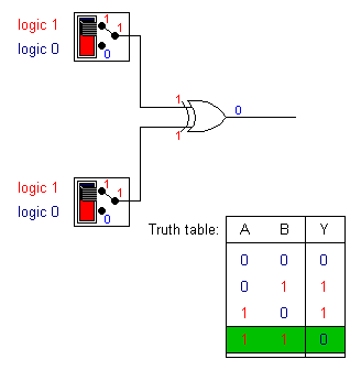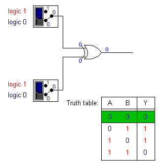(:Summary:Contains the 'action' links (like Browse, Edit, History, etc.), placed at the top of the page, see site page actions:) (:comment This page can be somewhat complex to figure out the first time you see it. Its contents are documented at PmWiki.SitePageActions if you need help. :) * Print (:comment (:if group Site,SiteAdmin,Cookbook,Profiles,PmWiki*:) (:comment delete if and ifend to enable backlinks:) * %item rel=nofollow class=backlinks accesskey='$[ak_backlinks]'% [[{*$Name}?action=search&q=link={*$FullName} | $[Backlinks] ]] (:ifend:) :) * Login Exclusive OR Gates<^< NOR Gates | Course Index | Exclusive-NOR Gates >^>(:nl:) Exclusive-OR gates will produce a logic 1 output whenever either one of the inputs is at logic 1 and the other is at logic 0. Exclusive-OR gates produce a logic 0 output whenever both inputs have the same logical state (i.e., when both are at logic 0 or both are at logic 1). The Boolean expression for the output, Y, of an exclusive-OR gate with inputs, A and B, is: Y = A .