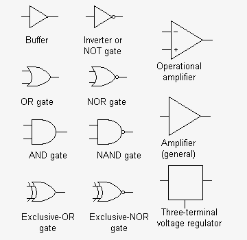 Electronic circuits and components * Course Index * Introduction * About the Author * About this Course * Feedback * Course Navigation * How to use this Course * TINA * Locktronics Fundamentals * Introduction: Fundamentals * Units and Multiples * Electricity * Electronic Principles * Electrical Circuits * Alternating Current * Assessment: Fundamentals Passive Components * Introduction: Passive Components * Resistors * Capacitors * Inductors * Transformers * Batteries, Fuses, Lamps and Switches * Assessment: Passive Components Semiconductors * Introduction: Semiconductors * Diodes * Transistors * Logic Gates * Assessment: Semiconductors Passive Circuits * Introduction: Passive Circuits * Series and Parallel Connections * Kirchoff's Laws * Potential and Current Dividers * Passive Time Variant Circuits * Assessment: Passive Circuits Active Circuits * Introduction: Active Circuits * Power Supply Circuits * Operational Amplifier Circuits * Transistor Amplifier Circuits * 555 Timer Circuits * Assessment: Active Circuits Parts Gallery * Introduction: Parts Gallery * Passive Component Images * Semiconductor Images * Other Images ## Miscellaneous ## Symbols ## Circuits ## Logic Gate Reference * Quizzes |