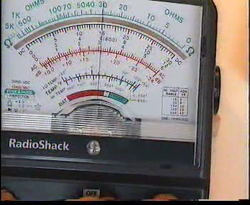 (:Summary:Contains the 'action' links (like Browse, Edit, History, etc.), placed at the top of the page, see site page actions:) (:comment This page can be somewhat complex to figure out the first time you see it. Its contents are documented at PmWiki.SitePageActions if you need help. :) * Print (:comment (:if group Site,SiteAdmin,Cookbook,Profiles,PmWiki*:) (:comment delete if and ifend to enable backlinks:) * %item rel=nofollow class=backlinks accesskey='$[ak_backlinks]'% [[{*$Name}?action=search&q=link={*$FullName} | $[Backlinks] ]] (:ifend:) :) * Login Measuring Resistance<^< Examples: BS1852 Resistor Coding | Course Index | Resistor Symbols >^>(:nl:) (:video_flv-player Attach:measures_3.flv width=352 height=288 params= startimage= The video shows how an analogue multimeter is used to measure the resistance of a resistor. Before carrying out the measurement it is important to ensure that the meter is correctly zeroed on the ohms range. This involves shorting the test leads together and adjusting the set zero control to obtain full-scale deflection on the meter (the pointer moves to the extreme right-hand of the scale). Once the meter has been zeroed, the test leads are placed on the resistor leads and the scale reading is noted. In this case, the meter resistor has a resistance of 39 ohms. This value agrees with that indicated by the resistor's colour code. (:nl:)(:table style="clear:both":)