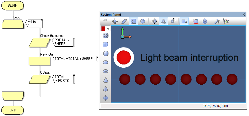 Introduction to Microcontroller Programming * Course Index * Introduction * About the Author * About this Course * Feedback * Course Navigation * Quick Course Navigation * How to use this Course * Acronyms Used and Course Conventions About PICmicro Chips * What is a PICmicro? * Microcontrollers * Digital versus Analogue * Inputs and Outputs * Memory * Programming * 16F1937 Architecture Clocking Your PICmicro Devices * Introduction * The Clock Circuit * Clock Settings * Clock Confusion E-Blocks * Introduction to E-blocks * Using E-blocks * E-blocks Boards Flowcode Step By Step * Introduction to Flowcode * Basic Flowcode Functions * Digital Outputs * Digital Inputs * Basic Loops ## Set up the Equipment ## Counting Sheep Badly ## Set up the Flowchart ## Create the Variables ## Set up the Calculation ## Loop Properties ## Set up the Input ## Set up the Output ## Adding the LED array ## Adding the Switches ## Simulation ## The Solution - Adding a Delay * The LCD Display * Binary Numbers * Decisions * Goto (Connection Point) * 7-Segment Displays * Software Macro * Strings and Memory * A Simple Hi-Fi PICmicro Projects * Introduction to PICmicro Projects * Construction Methods * Choosing a Power Source * Adding Inputs * Input Conditioning * Adding Outputs * Adding Drivers Labs * Introduction and Lesson Plan * 1. Output * 2. Delay * 3. Connection Point * 4. Calculations * 5. Loop * 6. Input * 7. Decision * 8. LCD * 9. Keypad * 10. Analogue + EEPROM * 11. Software Macro * 12. External Interrupt * 13. Timer Interrupt |
