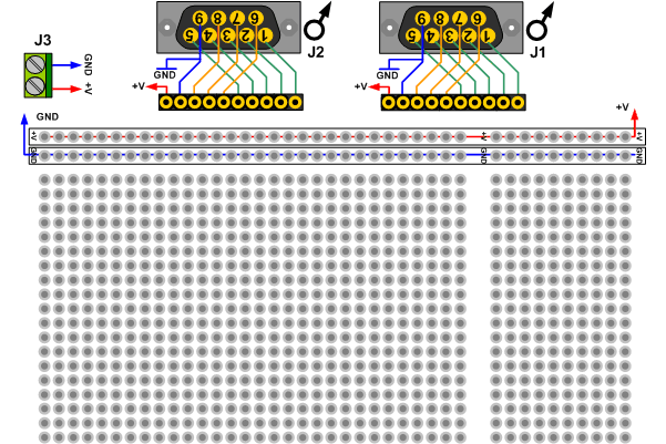 (:Summary:Contains the 'action' links (like Browse, Edit, History, etc.), placed at the top of the page, see site page actions:) (:comment This page can be somewhat complex to figure out the first time you see it. Its contents are documented at PmWiki.SitePageActions if you need help. :) * Print (:comment (:if group Site,SiteAdmin,Cookbook,Profiles,PmWiki*:) (:comment delete if and ifend to enable backlinks:) * %item rel=nofollow class=backlinks accesskey='$[ak_backlinks]'% [[{*$Name}?action=search&q=link={*$FullName} | $[Backlinks] ]] (:ifend:) :) * Login Patch Board EB017<^< Prototype Board (EB016) | Course Index | Introduction to Flowcode >^>(:nl:) EB017 Patch BoardMore information can be found here. ![]() EB017 Patch Board Block Diagram![]() * Click EB017-30-1 for a datasheet. * The male D-type connectors fit into the Female connectors of an upstream board. * This board lets you build and test your own PICmicro circuits. * BE AWARE OF: ** the current limit per PIN of the PICmicro is 25mA. Stay well below this limit! ** Connecting input devices on pins that are configured as outputs (see switch board EB007) ** The total current limit of the PICmicro (all of the pins) is 200mA. * Of you want to test a less permanent circuit, you may prefer the EB016 Prototype Board. An example of how the Patch board is usedThese two photographs show how you can use the Patch board. On the bottom side of the patch board you can use 'wiring pencil wire' to speed up the prototyping process. This thin wire has a layer of polyurethane insulating coating that burns away with a soldering iron to reveal the copper wire beneath. To use it you just apply the soldering iron for a second and then solder it to the appropriate component pin. ![]() ![]() (:nl:)(:table style="clear:both":)
