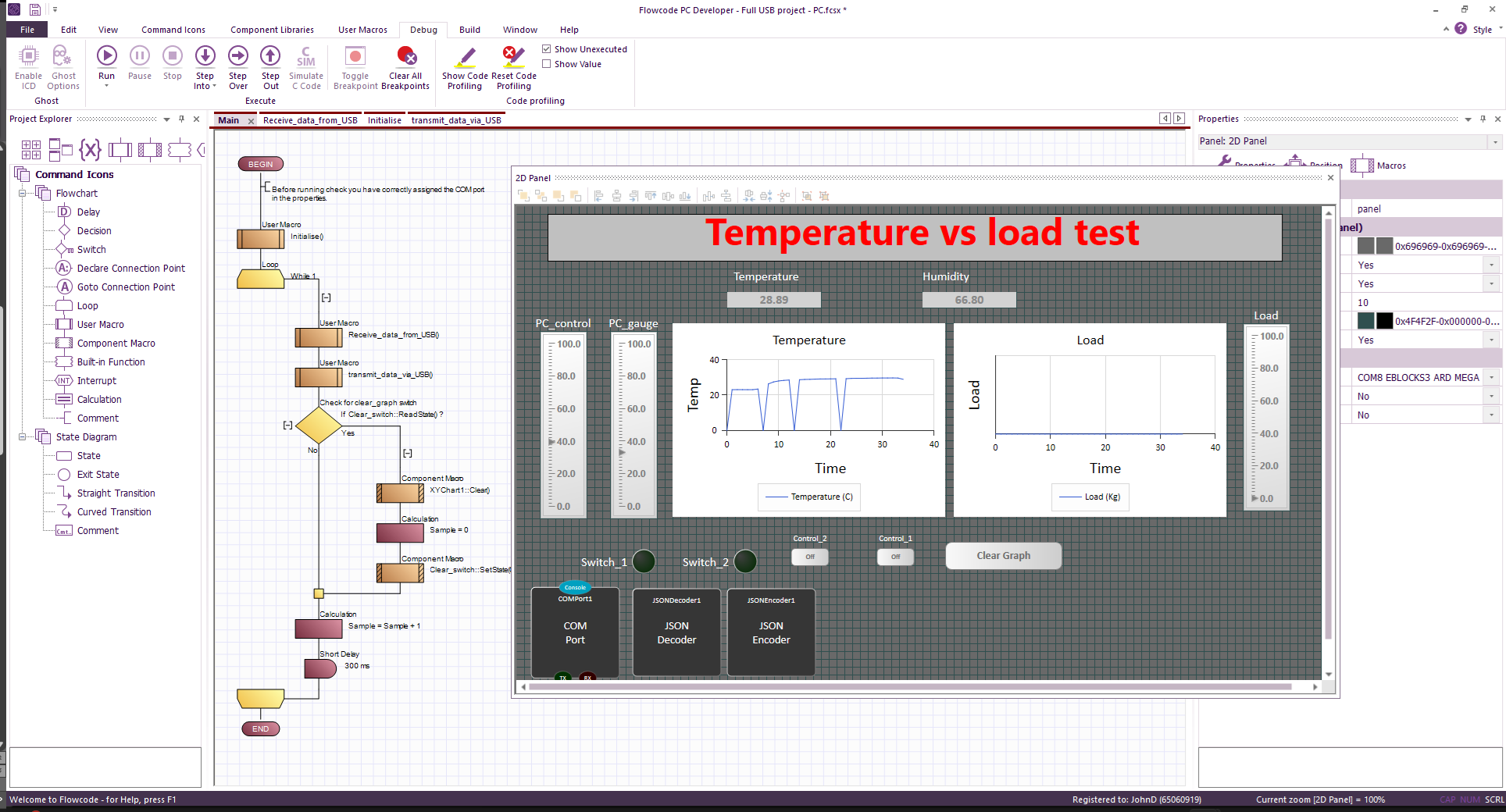 - Use on-board digital switches and analogue sliders to change real world parameters and see how your system copes.