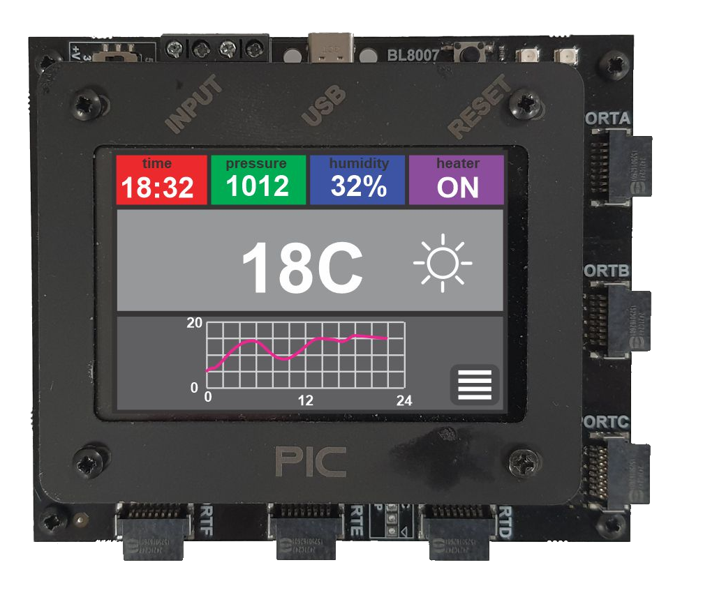 The implementation is simple: design a program using the E-Blocks 3 graphical display screen in Flowcode