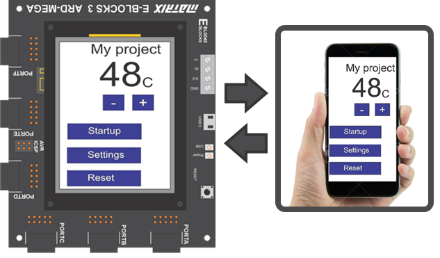 of the touch screen graphical display on your E-Blocks system. This works on local servers or remotely -