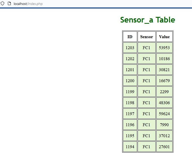 This is what it looks like. and this is the code that needs to be saved as a php file in the htdocs folder as the connect.php and update_sensor_a.php files described in the example above are. It may be possible to place it elsewhere but I have only tested it there.