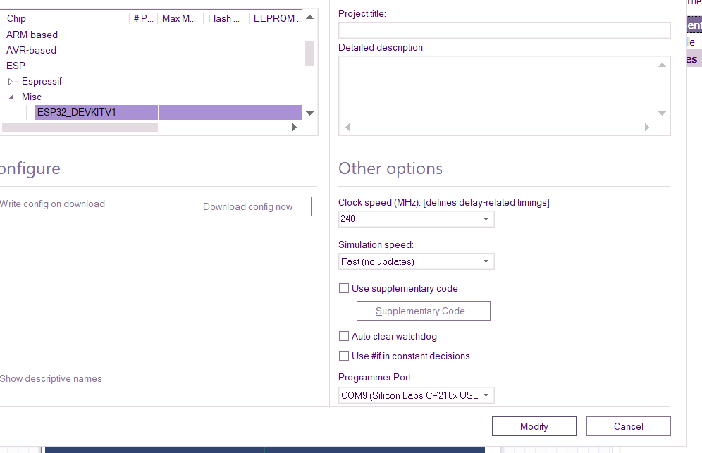 Now I have installed FC9 on my other PC (similar) again I am not able to program the ESP32. In Program option I see the Port, but port 9?