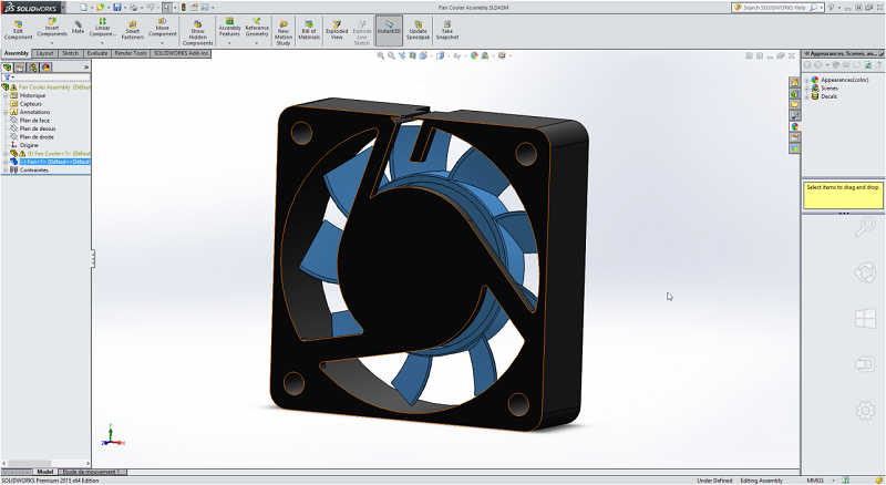 From the image below it can be seen that the fan assembly has imported as one assembly, containing 2 parts, which we will rename ‘Case’ and ‘Fan’.